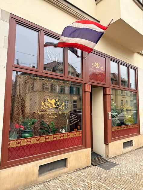 Nach dem starken Eindruck des Freitag Abend brauchte ich am Samstag was zum Entspannen. Und zufällig hatten wir uns einen Termin bei einem Thai-Massage-Studio bei uns um die Ecke gebucht. Wir sind schon einige Male dort gewesen. Aber dieses Mal war es besonders toll, weil die Behandlung echt nicht nur Genuss war sondern auch physisch geholfen hat. Deswegen heute meine Empfehlung hier für alle aus Dresden und Umgebung oder Menschen, die mal hier sind und eine Stunde Entspannung suchen. Die Frauen dort alle super nett und nach meinem individuellen Empfinden auch fachlich gut qualifiziert in dem was sie tun. Ich hatte eine Behandlung für Rücken/Nacken/Kopf/Gesicht. Für jemanden, der ständig am Schreibtisch und am Rechner sitzt eine Labsal. Also, ob hier in Dresden oder woanders. Samstag Morgen entspannt aufstehen, schön frühstücken und dann zur Massage. Man muss sich einfach selber regelmäßig dran erinnern und sich gönnen können. Ich habe gleich zwei weitere Termine gebucht. Versucht es.