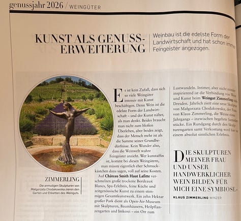 Es ist ein wirklich schöner Ort, kurz hinter Pillnitz. Man kann es also beispielsweise mit einem Besuch des Schlosses und Parks Pillnitz verbinden (mit dem Dampfer über die Elbe von Dresden). Von dort aus geht es wunderschön zu Fuß oberhalb der Weinberge und der Weinbergkirche entlang zum Weingut. Man kann traumhaft sitzen und hat einen wunderschönen Blick von den Weinbergen bis hinunter zur Elbe. Im Weingut selber verbindet sich Genuss und Kultur ganz organisch. Die Frau des Winzers, Malgorzata Chodakowska, ist eine ziemlich bekannte Bildhauerin und in einem Keller unter dem Weinberg kann man einige Skulpturen von ihr besichtigen. Neben tollem Wein natürlich gibt es auch kleine Snacks wie Käse, Oliven, Brot. Und selbst wenn mal alle Plätze besetzt sind, kann man sich Wein holen und einfach in den Weinberg setzen. Also unbedingt eine Picknick-Decke mitnehmen. Vielleicht sieht man sich mal dort.